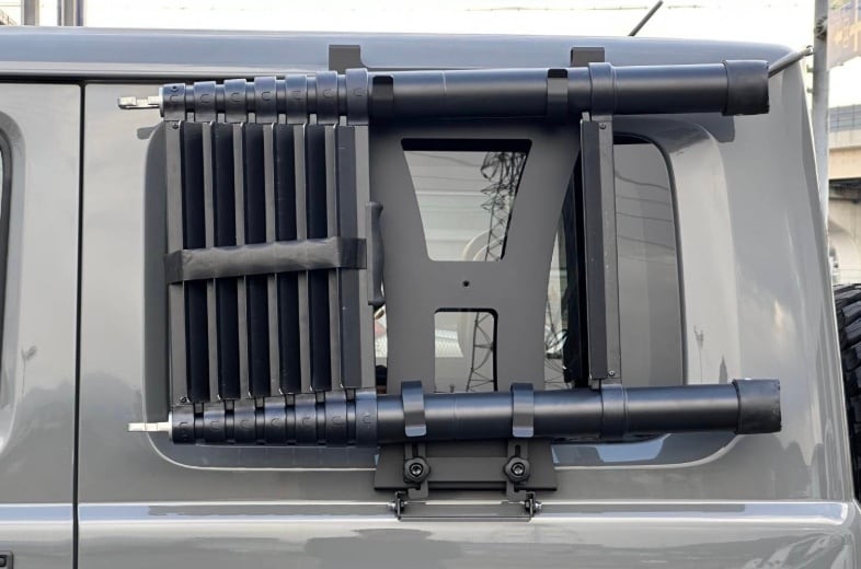 ジムニーシエラ(JB74)の車両側面に取り付け可能なサイドラダーラック。